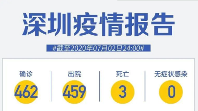 截至7月3日24時(shí),深圳累計(jì)報(bào)告新冠肺炎病例462例。