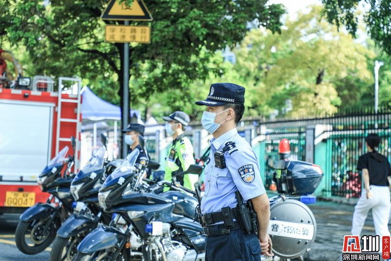 考場外,除了有家長組成的“應援團”外,深圳公安、消防、交警等部門組成的“護考團”也格外醒目。確保高考安全順利進行,“護考團”精心安排多種措施,答好這道至關重要的“考題”。