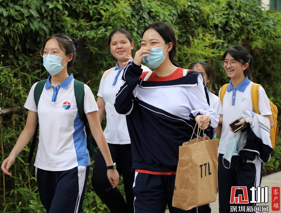 深圳高級中學考點外考生腳步輕盈走出考場,有說有笑。
