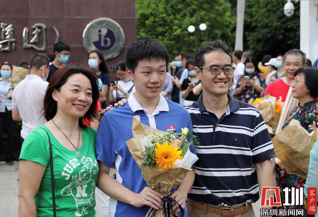 一家三口于深圳高級(jí)中學(xué)考點(diǎn)外進(jìn)行合影。