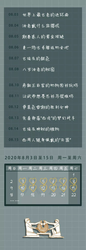 小小博物家,這個(gè)夏天我們從古埃及到古中國(guó),為漢武帝尋馬,拜訪八歲的埃及法老,追尋最古老的連環(huán)畫……與傳統(tǒng)課堂不同,小小博物家十二講,營(yíng)造充滿互動(dòng)性的“沉浸式”課堂。