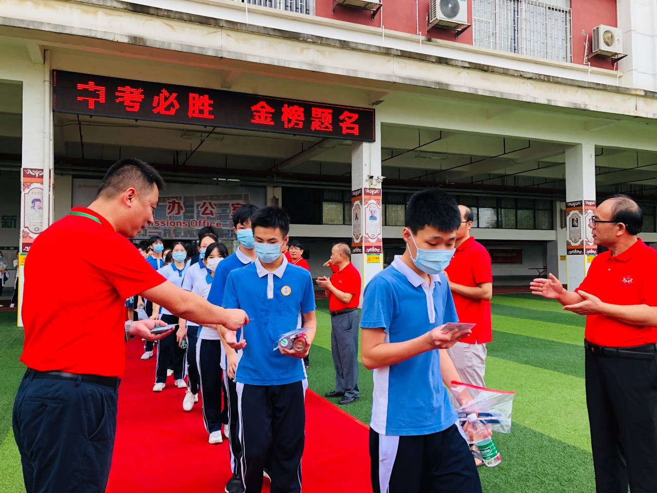 龍崗六約學(xué)校全體行政人員與九年級(jí)老師,穿著紅色送考服送考,寓意“鴻運(yùn)當(dāng)頭”。九年級(jí)學(xué)生走過(guò)龍門,踏上紅地毯,自帶炫酷出場(chǎng)bgm。(記者李麗、周紅聲)