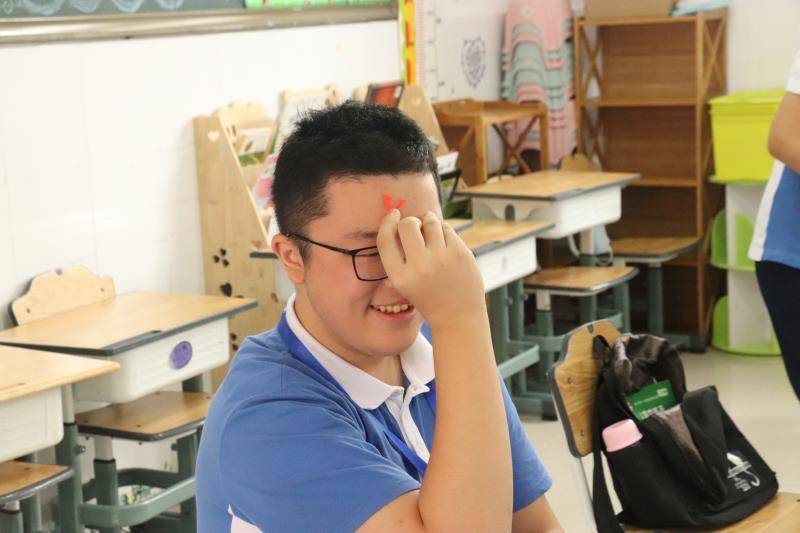 坪山同心外國(guó)語(yǔ)學(xué)校考生在腦門上貼上“紅色勝利標(biāo)”,在考場(chǎng)上震懾你的對(duì)手。(焦子宇、耿超逸 文 圖)