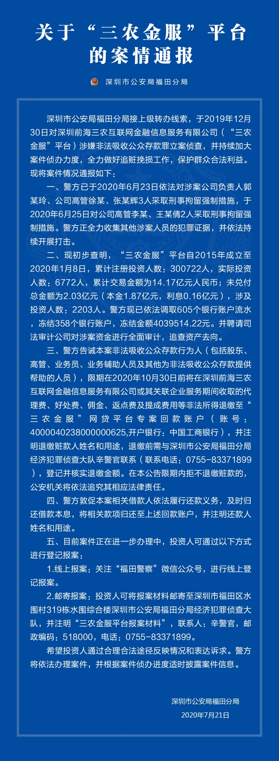 關(guān)于“三農(nóng)金服”平臺(tái)、“大麥理財(cái)”平臺(tái)的案情通報(bào)