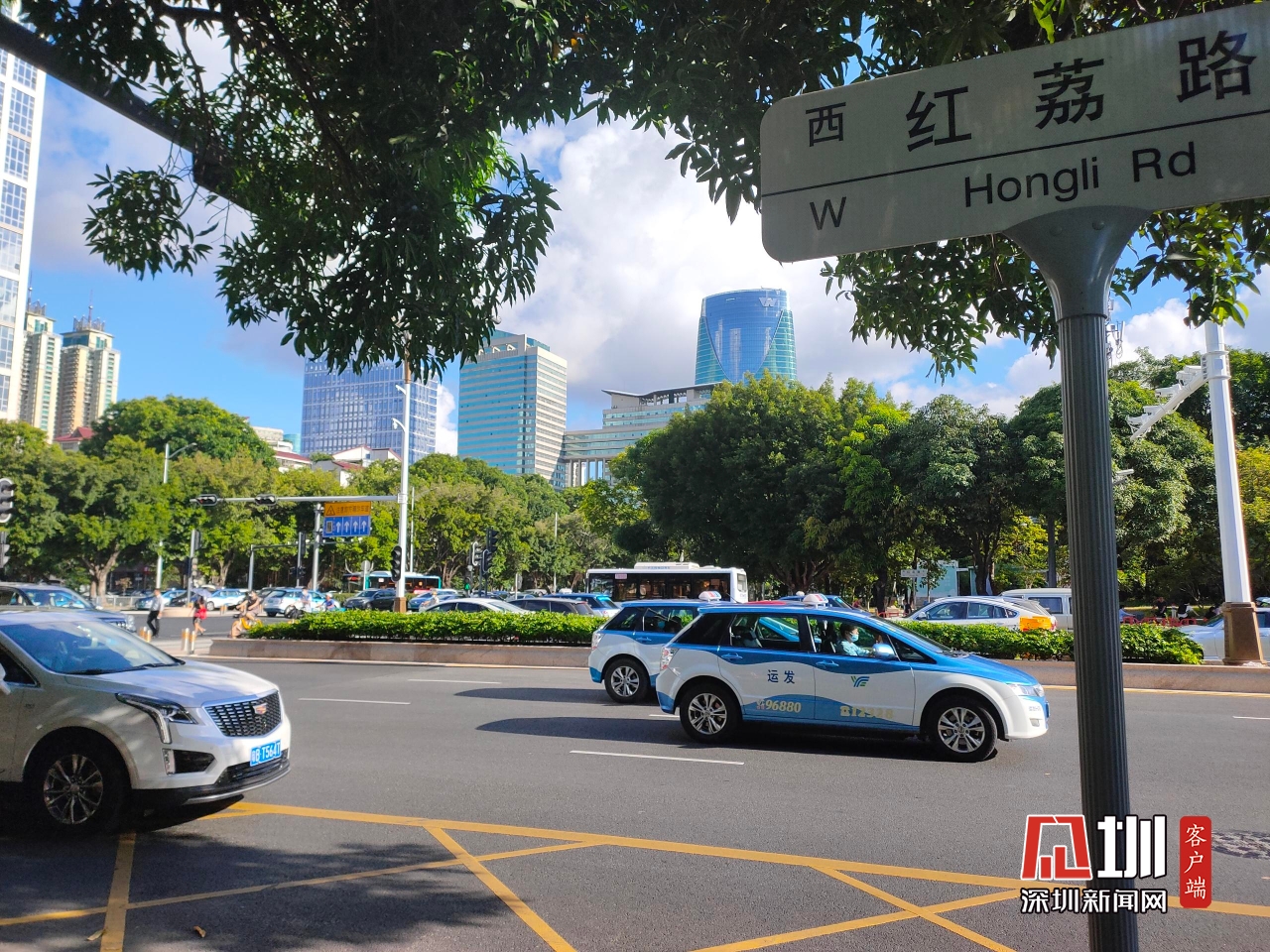 【紅荔路】上午8時,記者在紅荔路和新洲路交匯處拍攝實時路況。