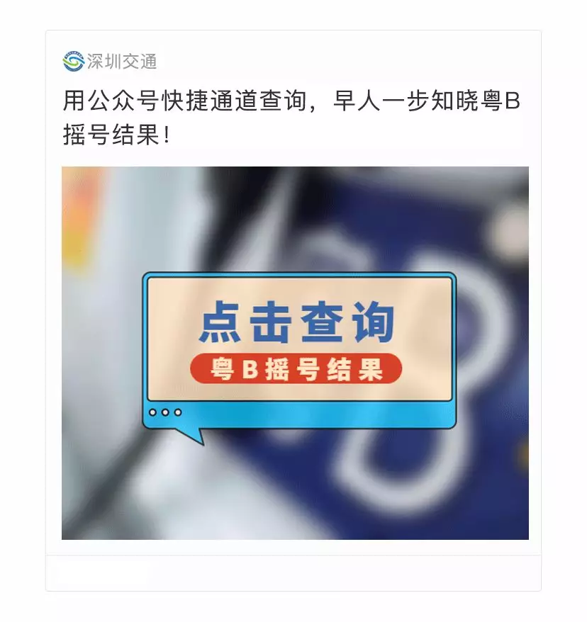 搖號當(dāng)日,“深圳交通”微信公眾號會第一時(shí)間推送公布粵B搖號結(jié)果的微信文章。
