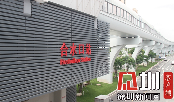 合水口站位于光明區(qū)合水路與碧水路之間的松白路上,沿松白路路中呈東西向敷設。西接薯田埔站,東接公明廣場站。站廳B端設置公共衛(wèi)生間(含殘疾人衛(wèi)生間),車站站廳設1個客服中心,站臺為島式站臺。合水口站為地面三層高架站,共設出入口4個:A口、B口、C口、D口。其中,A口位于松白路東北側(cè),為科學館方向公交接駁口;B口位于松白路西北側(cè),為主要緊急出入口;C口位于松白路輔路西南側(cè),為備用緊急出入口;D口位于松白路輔路東南側(cè),為松崗方向公交接駁口。