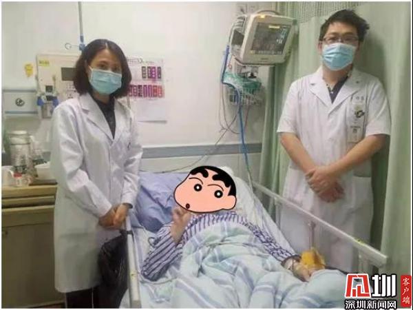 王威回憶:“做了7組心肺復蘇后,劉先生似乎曾有輕微的反應。我后來也沒敢松懈,一直堅持做到醫(yī)護人員來到現(xiàn)場?!?/p> 病情危急 入院搶救后轉危為安 16:43分左右,羅湖醫(yī)院急診科醫(yī)護人員接到120指揮部出車通知后,以最快速度到達了現(xiàn)場,立即開始接手現(xiàn)場救治。當時,王威已經(jīng)為劉先生做了7分鐘心肺復蘇。醫(yī)護人員迅速評估劉先生生命體征,發(fā)現(xiàn)他仍無呼吸、無心跳,立即繼續(xù)心肺復蘇并即時進行心電監(jiān)護,建立靜脈通路,開放氣道、球囊輔助通氣并注射腎上腺素。心電監(jiān)護提示室顫,在除顫2次后,劉先生恢復了自主呼吸和心跳,被送往羅湖醫(yī)院急診科進一步救治。