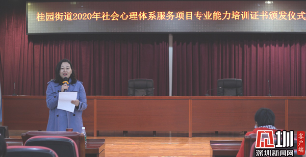 頒證儀式上,林宣妤對街道持證的心理服務(wù)人員表示祝賀,并提出殷切期望,希望持證人員所在社區(qū)要加強資源整合“盤活存量”,把購買服務(wù)與開拓專業(yè)志愿服務(wù)相結(jié)合,把挖掘暨有平臺、人才和培育本土化的心理服務(wù)隊伍相結(jié)合,把轄區(qū)內(nèi)現(xiàn)有的心理咨詢室、心理咨詢師、心理服務(wù)熱線、心理服務(wù)陣地等資源加以整合,構(gòu)建跨部門、跨領(lǐng)域的心理協(xié)作體系。同時希望持證人員在工作中能夠完成去粗取精,揚長抑短,去劣存優(yōu)的動態(tài)過程,將社會心理服務(wù)體系建設(shè)工作抓早抓好,落實到位。張小梨認為桂園街道黨工委辦事處拿出人力物力財力對參與社會心理服務(wù)的基層干部進行心理學專業(yè)知識系統(tǒng)培訓,可以說是走在了前列,探索出社會心理助力社會治理現(xiàn)代化建設(shè)的“桂園模式”,為深圳社會主義先行示范區(qū)建設(shè)在社會治理與社會心理服務(wù)方面提供了鮮活案例,值得點贊和推廣,也為相關(guān)學者在研究上提供了范例。