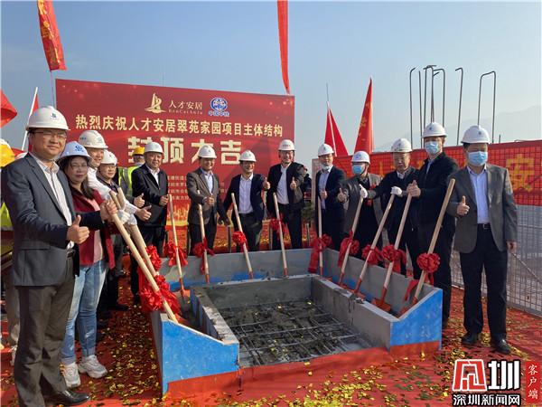 見圳客戶端·深圳新聞網(wǎng)1月22日訊(記者 李慧)“今天感到非常開心,四年前我們就期待這一天,這一天終于到來了。” 翠苑家園回遷業(yè)主胡先生如是說道。1月22日上午,由深圳市羅湖區(qū)蓮塘街道辦為實(shí)施主體、人才安居集團(tuán)旗下羅湖人才安居公司代建的首個(gè)城市更新項(xiàng)目翠苑家園項(xiàng)目完成結(jié)構(gòu)封頂。當(dāng)天,羅湖區(qū)住房和建設(shè)局、區(qū)審計(jì)局、區(qū)城市更新和土地整備局、人才安居集團(tuán)以及回遷業(yè)主等代表共同見證并完成最后一方混凝土澆筑。