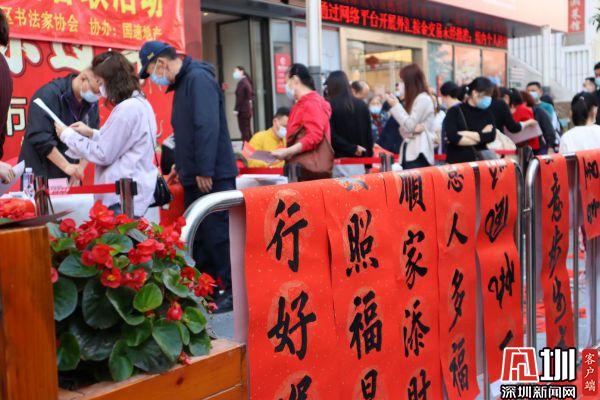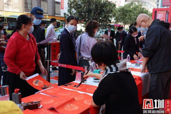 據(jù)悉,羅湖區(qū)書(shū)法家協(xié)會(huì)于2021年春節(jié)前夕組織一批優(yōu)秀書(shū)法家深入社區(qū)基層,現(xiàn)場(chǎng)為群眾書(shū)贈(zèng)春聯(lián),書(shū)贈(zèng)福字,目前活動(dòng)先后在羅湖美術(shù)館南廣場(chǎng)、漁民村、羅湖區(qū)委等地舉辦多場(chǎng)。羅湖區(qū)書(shū)法家書(shū)贈(zèng)春聯(lián)活動(dòng)已連續(xù)舉辦了22年,深受群眾喜愛(ài),成為羅湖的一項(xiàng)品牌活動(dòng)。