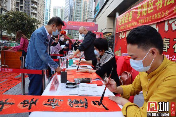 見(jiàn)圳客戶端·深圳新聞網(wǎng)2月3日訊(記者 劉晨)由羅湖區(qū)文化廣電旅游體育局、羅湖區(qū)文學(xué)藝術(shù)界聯(lián)合會(huì)主辦,羅湖區(qū)書(shū)法家協(xié)會(huì)承辦,國(guó)速地產(chǎn)協(xié)辦的“送福迎春”——羅湖區(qū)書(shū)法家書(shū)贈(zèng)春聯(lián)活動(dòng)2月1日在羅湖區(qū)寶安南路國(guó)速大廈南廣場(chǎng)舉行。