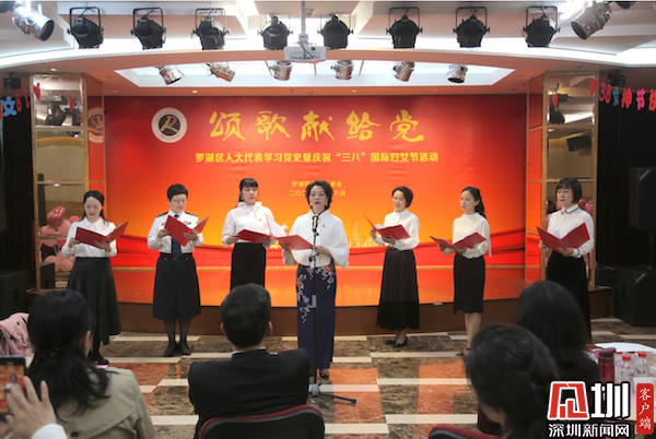 見圳客戶端·深圳新聞網(wǎng)3月8日訊(實(shí)習(xí)生 覃鈺清 記者 彭桂紅 通訊員 尹維穎 彭丹 劉寧寧)陽春三月,書寫巾幗正能量。3月8日上午,由羅湖區(qū)人大常委會(huì)主辦的“頌歌獻(xiàn)給黨”——人大代表學(xué)習(xí)黨史暨慶?!叭恕眹?guó)際婦女節(jié)活動(dòng),在羅湖人大代表之家溫馨舉行。羅湖區(qū)部分省、市、區(qū)人大代表及機(jī)關(guān)女干部歡聚一堂,共同慶祝第111個(gè)“三八”國(guó)際勞動(dòng)?jì)D女節(jié)。