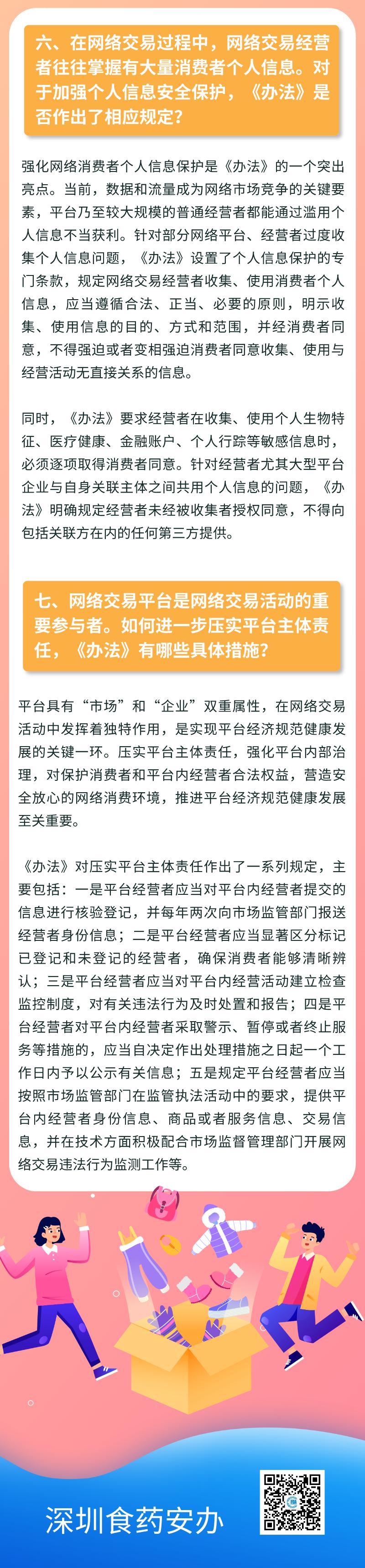《辦法》明確了網(wǎng)絡(luò)交易監(jiān)管堅(jiān)持鼓勵(lì)創(chuàng)新、包容審慎、嚴(yán)守底線、線上線下一體化監(jiān)管原則,提出推動(dòng)完善多元參與、有效協(xié)同、規(guī)范有序的網(wǎng)絡(luò)交易市場(chǎng)治理體系,對(duì)網(wǎng)絡(luò)經(jīng)營(yíng)主體登記、新業(yè)態(tài)監(jiān)管、平臺(tái)經(jīng)營(yíng)者主體責(zé)任、消費(fèi)者權(quán)益保護(hù)、個(gè)人信息保護(hù)等重點(diǎn)問(wèn)題作出了明確規(guī)定。