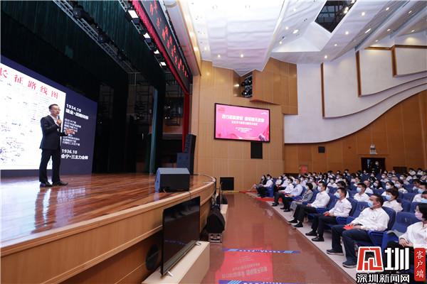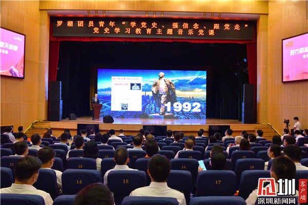 見圳客戶端·深圳新聞網(wǎng)4月2日訊(記者 李慧 通訊員 王舒琪)4月1日下午,羅湖青年相聚一堂,共同參加一場別開生面的沉浸式“學(xué)黨史、強(qiáng)信念、跟黨走”黨史學(xué)習(xí)教育主題音樂黨課?;顒犹匮松钲趶V電集團(tuán)廣播中心黨委委員劉洋用“藝術(shù)+黨史”的全新形式作主題講解。羅湖區(qū)委書記羅育德,區(qū)領(lǐng)導(dǎo)呂漫妮、李志榮、陳龍興、羅安娜,團(tuán)市委副書記賴鋒等出席了活動。