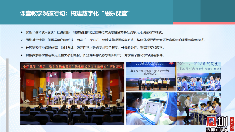 羅湖區(qū)推出的數(shù)字化“思樂課堂”相關(guān)課題,2020年被《中國(guó)教師報(bào)》認(rèn)定為中國(guó)教育課堂改革十大樣本?!八紭氛n堂”充分發(fā)揮數(shù)字技術(shù),提升課堂的邏輯性、趣味性、交互性、有效性,從而有效激發(fā)學(xué)生的學(xué)習(xí)潛能,使得深度學(xué)習(xí)在課堂中真實(shí)發(fā)生。目前,這種模式影響力也在不斷擴(kuò)大,走向全國(guó)。4月8日,深圳市錦田小學(xué)、布心小學(xué)與來自陜西、江西的學(xué)校締結(jié)了數(shù)字化“思樂課堂”姊妹學(xué)校。近期,第二批數(shù)字化“思樂課堂”的學(xué)校和教師加入這個(gè)課改項(xiàng)目。
