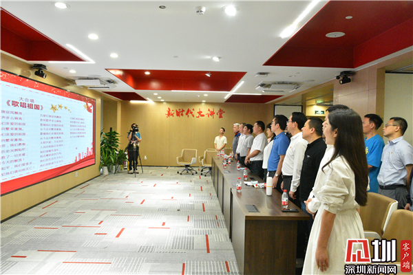 黨史100年,深圳經(jīng)濟(jì)特區(qū)建立40多年,有著無(wú)數(shù)的重大歷史事件和歷史時(shí)刻,深圳音樂(lè)也一直與改革開(kāi)放同步,與特區(qū)建設(shè)同步。在黨課的尾聲,現(xiàn)場(chǎng)的黨員干部共同唱起了《歌唱祖國(guó)》,一句句、一聲聲,唱出了大家的愛(ài)國(guó)熱情和初心使命。