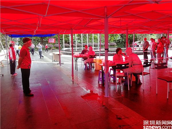 “今天的任務(wù)不會因為暴雨而減輕?!薄耙咔榫褪敲睿瑳]有休息可言。”......上午9點,紅色的雨棚已在京基100樓下陸續(xù)搭起,這是深圳市羅湖區(qū)桂園街道老圍社區(qū)核酸檢測臨時點,不少醫(yī)護人員、義工社工紛紛集結(jié),開始忙碌的工作。