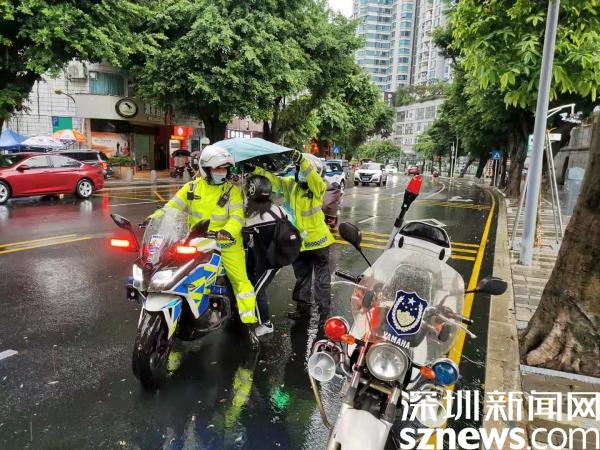 據(jù)了解,為確保大雨天氣下此次中考安全順利進(jìn)行,羅湖交警大隊高度重視,提前上崗,全力組織轄區(qū)警力疏導(dǎo)各考場周邊交通,并加強(qiáng)駐點值守和執(zhí)勤保障,以及時為有需要的考生及家長提供幫助。
