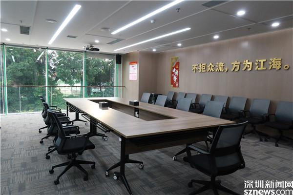 值得一提的是,趣·先行之家作為智慧辦公空間,一扇隔斷推拉門將空間分為辦公區(qū)和咨詢室,配套便捷可拼接式桌椅,使空間可靈活復(fù)合使用,既為“兩新”黨組織、群團(tuán)組織、“兩代表一委員”提供了共享辦公空間,還為企業(yè)員工提供了法律及心理咨詢空間;作為開(kāi)展重要中大型會(huì)議的初心會(huì)議室,也滿足了工作人員開(kāi)展大型會(huì)議的需求。