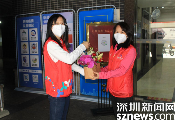 讀特客戶端·深圳新聞網(wǎng)2022年3月9日訊(記者 劉嘉敏 通訊員 楊紀(jì)歐)3月8日,是國際婦女節(jié),所有堅守在羅湖區(qū)桂園街道老圍社區(qū)抗疫一線的女性社區(qū)工作者、下沉人員、志愿者和醫(yī)務(wù)人員都收到了一個精美的小花籃,花籃里百合、玫瑰、蘭花等悠然綻放,芳香四溢,鼓舞了滿員士氣。