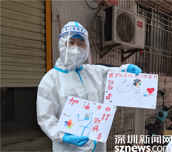 拿起小喇叭,化身段子手;遇到問題,化身解決問題小能手。在黃貝嶺社區(qū)新設的一個核酸采樣點,帳篷暫時還沒有到位,正午太陽直射,手機反光厲害,掃不出碼,就躲在桌子的陰影里掃碼;第二天又刮大風,處在風口的帳篷幾乎被吹飛,他們和居民一起徒手拉住帳篷,守護“陣地”。