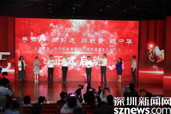 香港教育局局長(zhǎng)楊潤(rùn)雄,澳門教育及青年發(fā)展局副局長(zhǎng)黃嘉祺,深圳市委教育工委副書記、市教育局黨組成員楊平分別致辭,充分肯定了攜手同學(xué)行動(dòng)對(duì)深港澳文化交流的貢獻(xiàn),并希望未來(lái)三地能有更加深入、密切的聯(lián)系,互惠雙贏,切實(shí)增強(qiáng)深港澳青少年的民族自豪感和凝聚力。隨后,領(lǐng)導(dǎo)與港澳青年代表上臺(tái)啟動(dòng)深港澳青少年慶祝香港回歸25周年系列活動(dòng)。