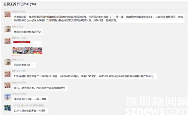讀特客戶端·深圳新聞網(wǎng)2022年6月20日訊(記者 吳艷 通訊員 韓珊)為落實(shí)基層黨建“標(biāo)準(zhǔn)+質(zhì)量+示范”要求,推動黨建業(yè)務(wù)工作深度融合,幫助基層黨組織找準(zhǔn)黨建品牌創(chuàng)建的切入點(diǎn)和實(shí)施路徑,6月16日,羅湖區(qū)委衛(wèi)生健康工委圍繞基層黨建的熱點(diǎn)難點(diǎn)問題,舉辦了一場以交流激發(fā)思考的“書記沙龍”,區(qū)婦保院婦女保健科書記陳艷梅線上分享黨建品牌創(chuàng)建經(jīng)驗(yàn)和服務(wù)群眾的心得體會,68名支部書記熱烈探討,共同交流提高。