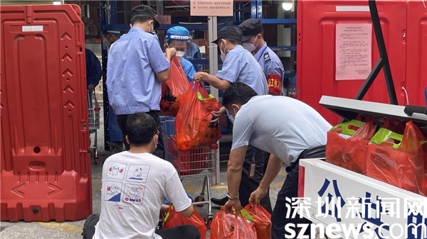 為保障居民生活物資,居民通過(guò)線上商城訂購(gòu)物資,配送的貨品第一站將來(lái)到小區(qū)門(mén)口的貨架上,由工作人員統(tǒng)一收取,并用酒精進(jìn)行消殺。隨后,第二站的工作人員將根據(jù)配送詳細(xì)地址,準(zhǔn)確送至每位居民的家門(mén)口,盡可能地減少傳播風(fēng)險(xiǎn)和人際接觸。