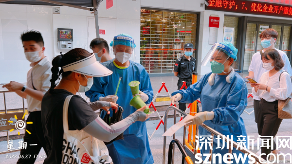 除了“人力”支援,“物力”支援也沒(méi)落下。考慮到大部分核酸檢測(cè)點(diǎn)的現(xiàn)場(chǎng)工作人員要在高溫下工作,南湖街道周邊商戶及居民自發(fā)送來(lái)米湯、甘蔗汁等防暑物資,為防疫一線工作人員“送清涼”。