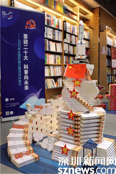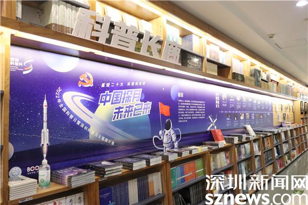 在科普月期間,羅湖書城在一樓“長(zhǎng)盒子”空間,特別打造了“科創(chuàng)科普 兩翼齊飛”主題教育展。展覽圍繞“中國(guó)這十年科技創(chuàng)新交出亮眼成績(jī)單”“紀(jì)念科普法頒布20周年”兩大重要節(jié)點(diǎn),策劃了“科技創(chuàng)新”“科普法治”“互動(dòng)學(xué)習(xí)”三大內(nèi)容板塊,集中展示中國(guó)科技發(fā)展報(bào)告、《中華人民共和國(guó)科學(xué)技術(shù)普及法》《深圳經(jīng)濟(jì)特區(qū)科學(xué)技術(shù)普及條例》等內(nèi)容,圖文并茂地講述了中國(guó)科技發(fā)展成果和中國(guó)科普工作成果。