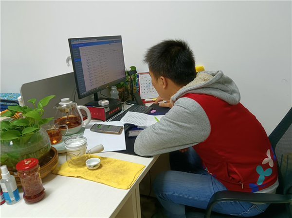 1月14日,因?yàn)榫幼〉赜忻芙诱撸煌ㄖ蛹腋綦x,但他并沒有停止工作,依然在家里配合數(shù)據(jù)組進(jìn)行流調(diào),每天打電話追蹤被調(diào)查者信息,錄入系統(tǒng)更新。