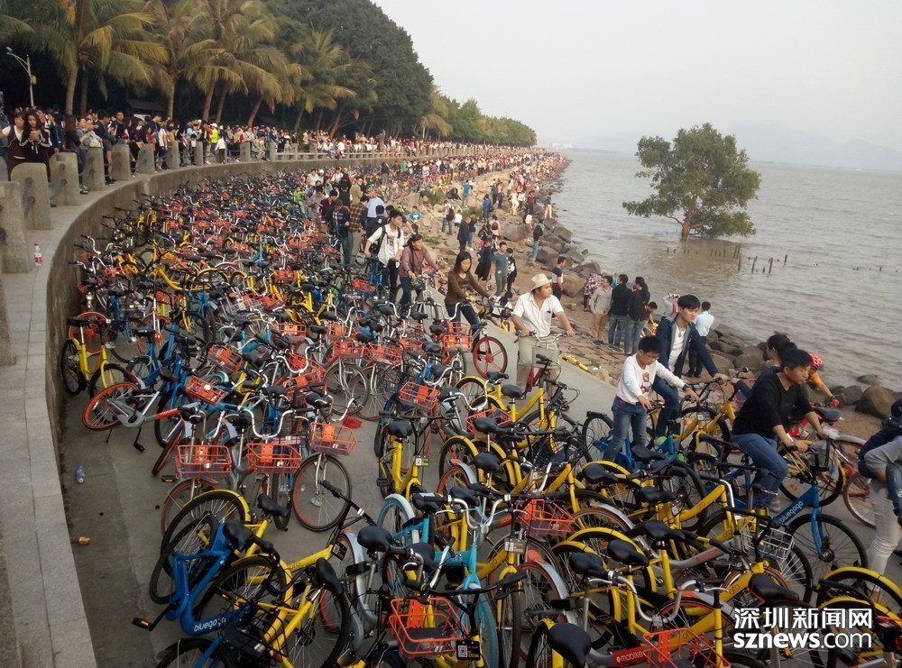 鵬城眼|深圳人假日勤動腳 共享單車“擠爆”深圳灣