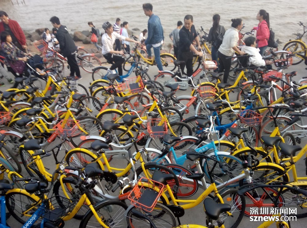 鵬城眼|深圳人假日勤動腳 共享單車“擠爆”深圳灣