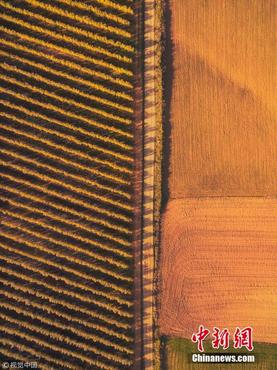 4月2日訊(具體拍攝時(shí)間不詳),西班牙托萊多,21歲的風(fēng)景攝影師Javier del Cerro使用無(wú)人機(jī)拍攝了一大片顏色鮮明、種植著松樹和豌豆的土地。無(wú)人機(jī)保持在122米高,拍出了少有人知的美景。Javier現(xiàn)居馬德里,以前家在托萊多。圖片來(lái)源:視覺(jué)中國(guó)