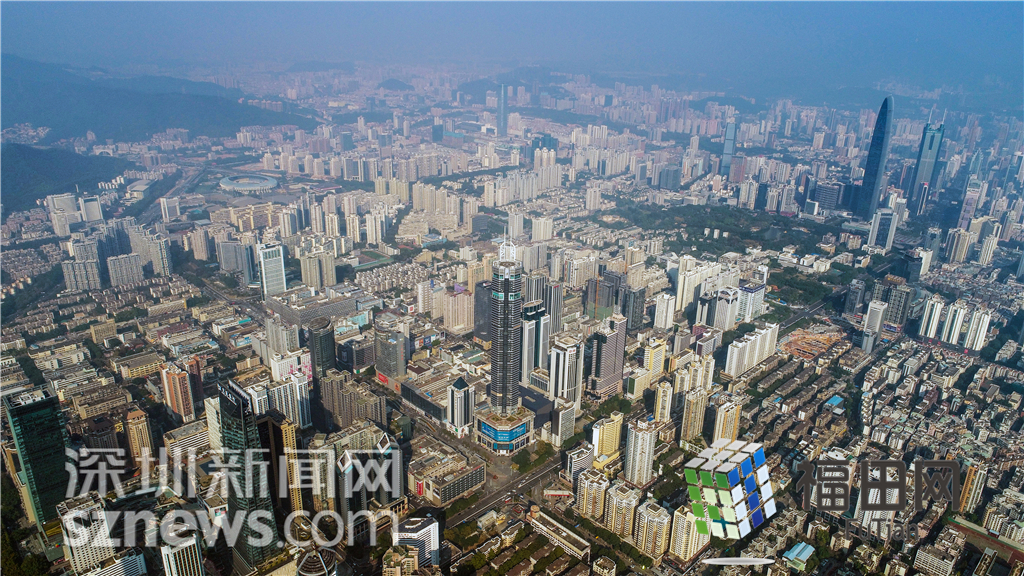 大樓全貌,遠(yuǎn)處是京基100和地王大廈。