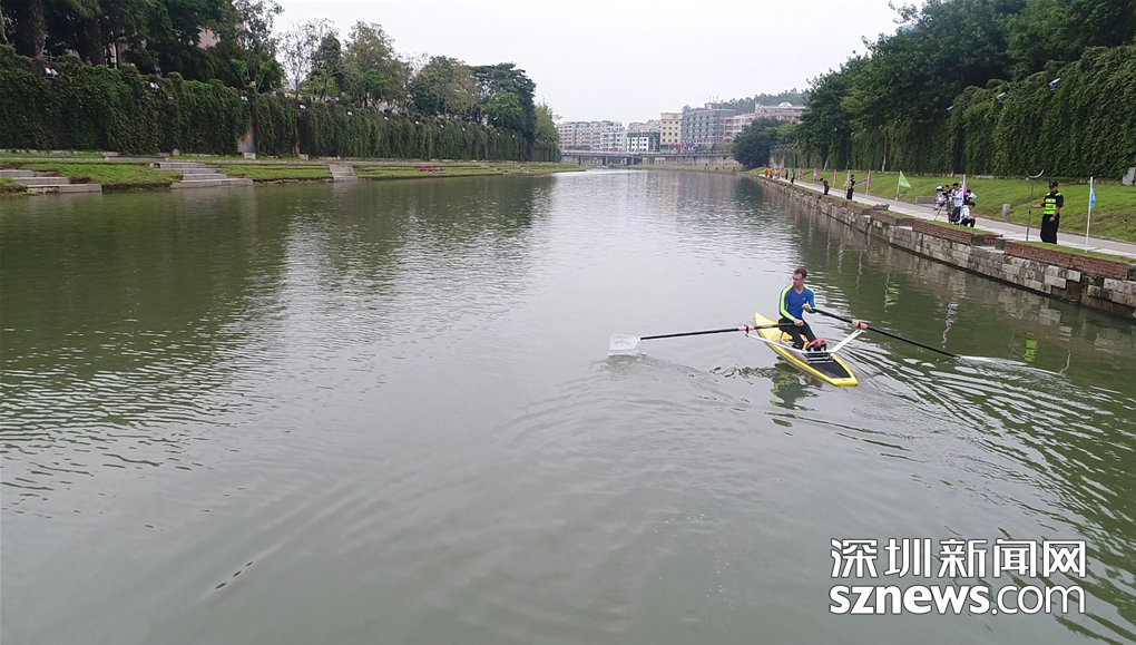 賽艇俱樂部成員在觀瀾河上劃單人賽艇