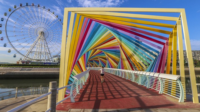 5月7日,湖北省襄陽市,無人機(jī)航拍的漢江長虹大橋處涇渭分明的漢江水面。強(qiáng)暴雨沖刷經(jīng)過去冬今春的田野地表積累的塵土,經(jīng)支流與主河道匯入時(shí),充滿污泥的洪水與主河道上清澈的丹江水形成難得一見的涇渭分明景觀。王虎攝 圖片來源:視覺中國
