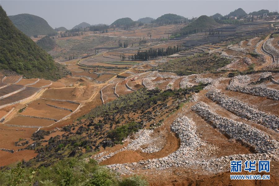 西疇縣興街鎮(zhèn)“三光”片區(qū)石漠化綜合治理工作接近尾聲,一片片石山被壘成臺地(2016年4月14日攝)?;纳蕉d嶺,怪石盤亙;河道斷流,重山阻隔。這是云南西疇,一個被專家稱為“失去生存條件”的地方。就在這樣一個地方,當?shù)馗刹咳罕娨浴暗炔皇寝k法,干才有希望”的奮斗精神,戰(zhàn)天斗地、自力更生。目前,西疇縣公路密度是全省3倍,行政村、自然村通公路率均達100%。今年,西疇縣計劃脫貧摘帽。新華社記者吉哲鵬攝