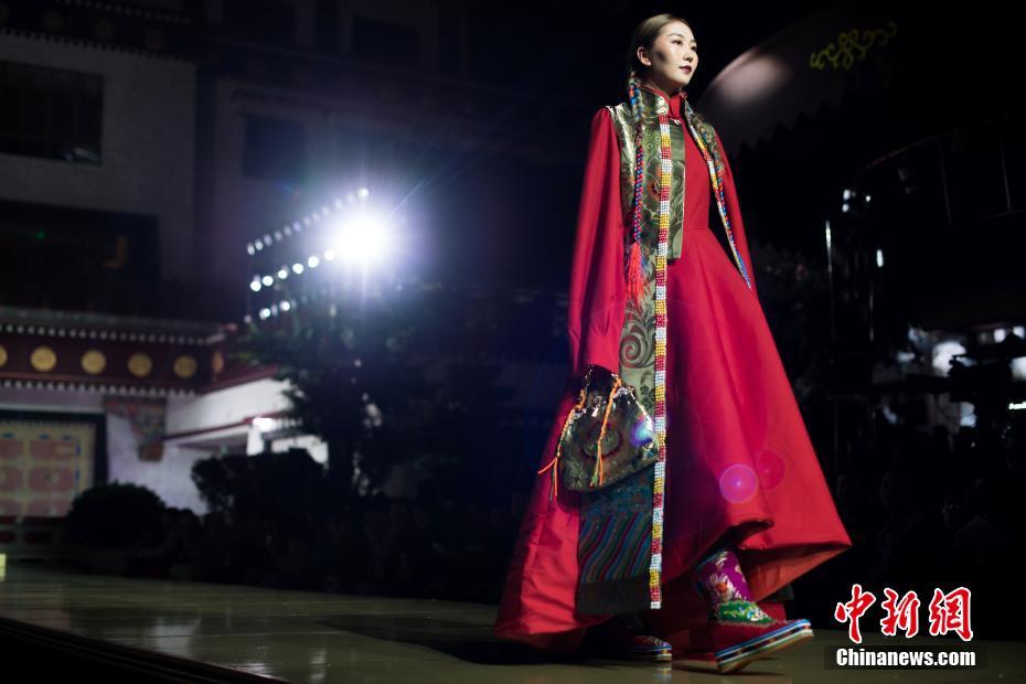 8月12日晚,由西藏職業(yè)技術(shù)學(xué)院與北京服裝學(xué)院共同打造的“凈美雪頓·美好生活”西藏民族服裝與服飾展演活動(dòng)在拉薩舉行?,F(xiàn)場(chǎng)通過(guò)傳統(tǒng)篇、現(xiàn)代篇與未來(lái)篇三個(gè)篇章,展演了藏族傳統(tǒng)服裝26套,設(shè)計(jì)創(chuàng)新服裝58套,共計(jì)84套服裝。圖為模特展示現(xiàn)代設(shè)計(jì)的創(chuàng)新藏族服飾。中新社記者何蓬磊 攝