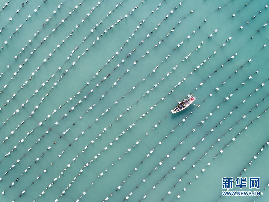 8月18日,漁船行駛在南麂島馬祖岙海域內(nèi)的“海上牧場”大黃魚養(yǎng)殖區(qū)(無人機(jī)拍攝)。進(jìn)入8月,浙江省溫州市平陽縣南麂鎮(zhèn)海域上大片的大黃魚、貽貝等特色海產(chǎn)品養(yǎng)殖區(qū)域迎來豐收季節(jié),養(yǎng)殖戶們駕駛漁船在養(yǎng)殖區(qū)海域進(jìn)行打撈收獲,在碧海藍(lán)天下構(gòu)成了一幅“海上牧場”的美麗豐收景象。近年來,南麂鎮(zhèn)政府引導(dǎo)漁民養(yǎng)殖戶充分發(fā)揮“靠海吃?!钡馁Y源優(yōu)勢(shì),大力發(fā)展海洋養(yǎng)殖經(jīng)濟(jì)和海島旅游經(jīng)濟(jì),實(shí)現(xiàn)了南麂由“生態(tài)美”向“產(chǎn)業(yè)美”,“產(chǎn)業(yè)美”向“經(jīng)濟(jì)美”的轉(zhuǎn)變。同時(shí)該鎮(zhèn)堅(jiān)持以大黃魚、貽貝等為特色產(chǎn)業(yè)支撐,精準(zhǔn)發(fā)展高效海洋養(yǎng)殖業(yè),重點(diǎn)培養(yǎng)一批新型職業(yè)漁民,依靠專業(yè)技術(shù)支持,實(shí)現(xiàn)深海仿生養(yǎng)殖,讓好生態(tài)造就好品質(zhì),重點(diǎn)打造南麂養(yǎng)殖品牌,組建營銷網(wǎng)絡(luò),拓展特色海產(chǎn)品市場。新華社記者 徐昱攝