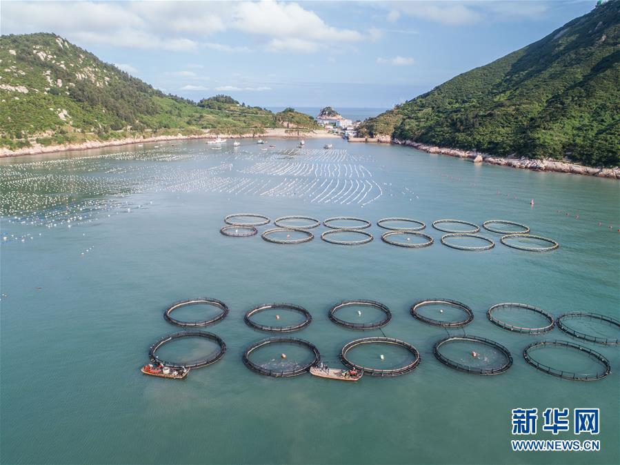 8月19日,空中俯瞰南麂島(無人機(jī)拍攝)。進(jìn)入8月,浙江省溫州市平陽縣南麂鎮(zhèn)海域上大片的大黃魚、貽貝等特色海產(chǎn)品養(yǎng)殖區(qū)域迎來豐收季節(jié),養(yǎng)殖戶們駕駛漁船在養(yǎng)殖區(qū)海域進(jìn)行打撈收獲,在碧海藍(lán)天下構(gòu)成了一幅“海上牧場”的美麗豐收景象。近年來,南麂鎮(zhèn)政府引導(dǎo)漁民養(yǎng)殖戶充分發(fā)揮“靠海吃?!钡馁Y源優(yōu)勢(shì),大力發(fā)展海洋養(yǎng)殖經(jīng)濟(jì)和海島旅游經(jīng)濟(jì),實(shí)現(xiàn)了南麂由“生態(tài)美”向“產(chǎn)業(yè)美”,“產(chǎn)業(yè)美”向“經(jīng)濟(jì)美”的轉(zhuǎn)變。同時(shí)該鎮(zhèn)堅(jiān)持以大黃魚、貽貝等為特色產(chǎn)業(yè)支撐,精準(zhǔn)發(fā)展高效海洋養(yǎng)殖業(yè),重點(diǎn)培養(yǎng)一批新型職業(yè)漁民,依靠專業(yè)技術(shù)支持,實(shí)現(xiàn)深海仿生養(yǎng)殖,讓好生態(tài)造就好品質(zhì),重點(diǎn)打造南麂養(yǎng)殖品牌,組建營銷網(wǎng)絡(luò),拓展特色海產(chǎn)品市場。新華社記者 徐昱攝