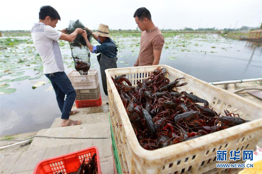 5月23日,在南昌市新建區(qū)象山鎮(zhèn)河林村,當(dāng)?shù)剞r(nóng)戶將捕獲的小龍蝦搬運(yùn)上岸裝箱。近日,江西省南昌市新建區(qū)1.7萬畝水域養(yǎng)殖小龍蝦喜獲豐收,當(dāng)?shù)剞r(nóng)戶紛紛將鮮活的小龍蝦捕獲上岸,裝箱外銷。據(jù)了解,近年來,南昌市新建區(qū)發(fā)揮轄區(qū)內(nèi)河道縱橫,水田眾多的優(yōu)勢(shì),支持鼓勵(lì)農(nóng)戶發(fā)展小龍蝦養(yǎng)殖業(yè),為當(dāng)?shù)剞r(nóng)戶開辟了一條特色養(yǎng)殖的致富之路。新華社記者彭昭之 攝
