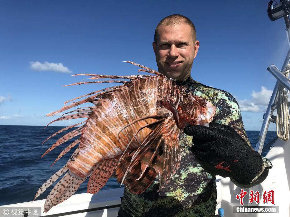 8月21日訊(具體拍攝時(shí)間不詳),近日,來自長島的Timothy Blasko打破了記錄,他捕獲了大西洋最重的獅子魚。37歲的Timothy Blasko是一名技術(shù)精湛的捕魚者,當(dāng)天,他和朋友們?cè)诜鹆_里達(dá)群島伊斯拉莫拉達(dá)海岸捕魚時(shí),遇到了這條大魚。Timothy向朋友要來了魚叉,瞄準(zhǔn)大魚的下方位置叉去,正中目標(biāo)成功捕獲。當(dāng)他們把這條魚和當(dāng)天捕獲的其它魚排在一起時(shí),他們猜測(cè)這條魚可能會(huì)破紀(jì)錄?!八喼笔仟{子魚中的哥斯拉!” Timothy描述道,“這條巨大的獅子魚重達(dá)3.1磅,刷新了大西洋迄今最重獅子魚的國家紀(jì)錄。”圖片來源:視覺中國