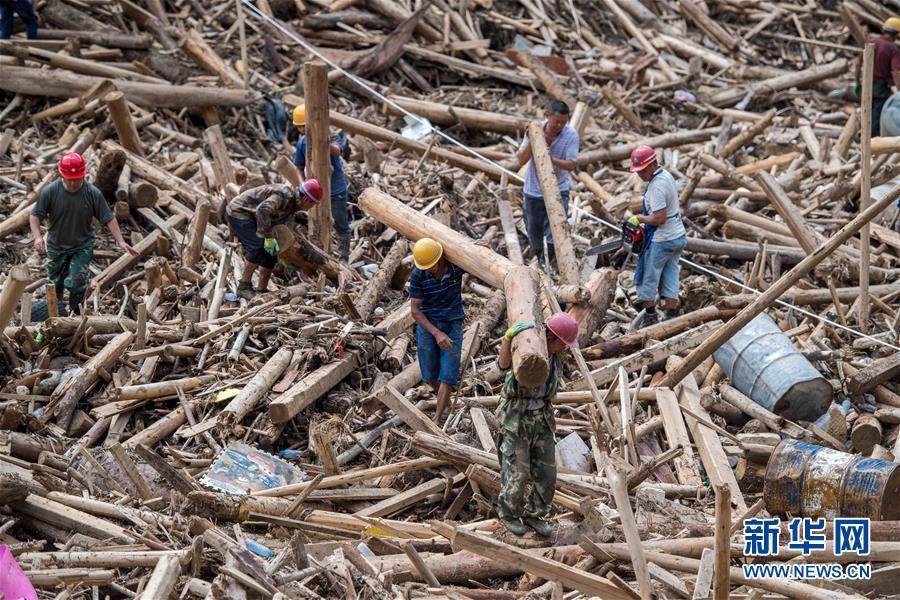 9月4日,當(dāng)?shù)厝罕娫诼槔跗驴h猛硐瑤族鄉(xiāng)壩子橋區(qū)域清理河道內(nèi)堆積的木材。當(dāng)日,云南麻栗坡山洪泥石流災(zāi)害救援工作繼續(xù)開展,救援人員在現(xiàn)場(chǎng)全力搜尋失蹤人員。新華社發(fā)方超 攝 圖片來源:新華網(wǎng)