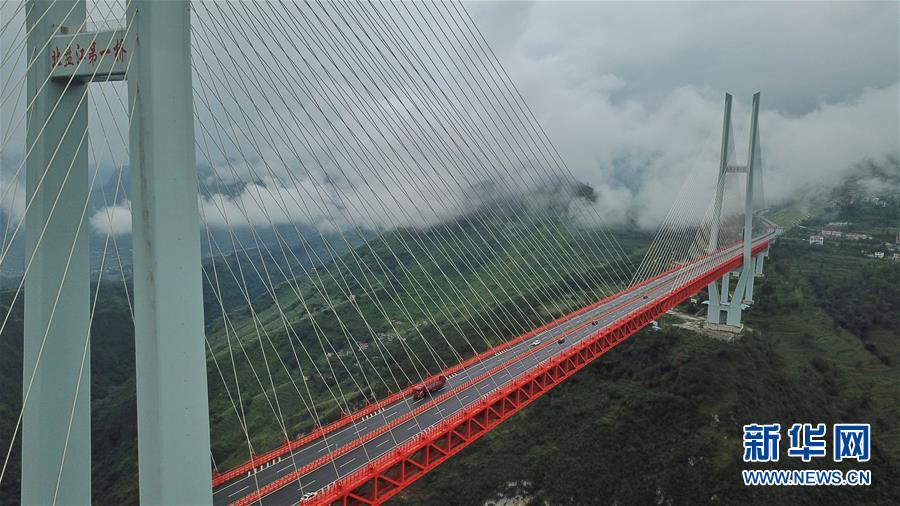 8月9日無人機航拍的北盤江大橋。 新華社記者歐東衢攝