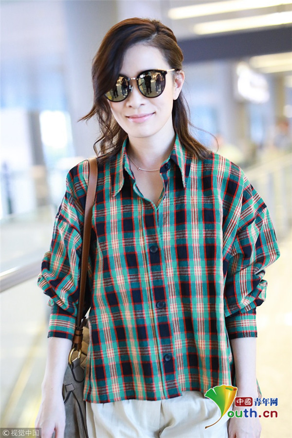 2018年9月9日,“嫻妃”佘詩曼從上海機(jī)場飛往北京機(jī)場,她擺“剪刀腿”大方任拍,身穿格紋襯搭配衫燈籠褲,時(shí)髦青春衣品超贊!