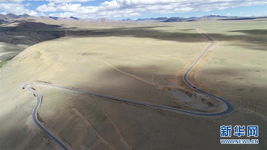 從空中鳥瞰西藏阿里地區(qū)札達(dá)縣公路(9月10日無(wú)人機(jī)拍攝)。 西藏阿里地區(qū)素有“世界屋脊的屋脊”之稱,平均海拔4000米以上。這里河流縱橫、湖泊密布、土林林立。從空中鳥瞰阿里大地,呈現(xiàn)出一幅幅獨(dú)特的美景。 新華社記者 普布扎西 攝