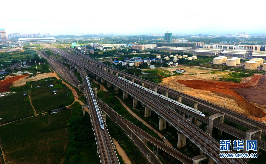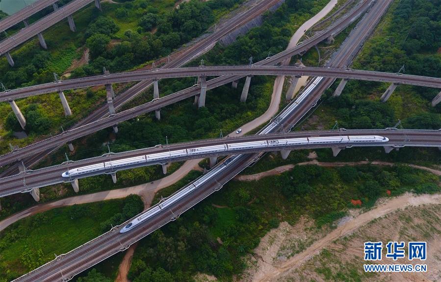 一列動(dòng)車在南寧市區(qū)行駛(9月4日無人機(jī)拍攝)。 廣西壯族自治區(qū)成立60年來,鐵路建設(shè)發(fā)生翻天覆地的變化。來自中國鐵路南寧局集團(tuán)有限公司的數(shù)據(jù)顯示,1958年廣西鐵路總里程為1346.3公里,如今廣西鐵路總里程達(dá)5191公里。廣西與周邊相鄰省份間實(shí)現(xiàn)動(dòng)車“公交化”開行。此外,北部灣港—重慶班列、東盟海產(chǎn)品冷鏈班列、“百色一號”果蔬專列等的開通和運(yùn)營,強(qiáng)化了鐵路供給的針對性和有效性。鐵路成為助推廣西經(jīng)濟(jì)社會快速發(fā)展的“大動(dòng)脈”。 新華社記者陸波岸攝