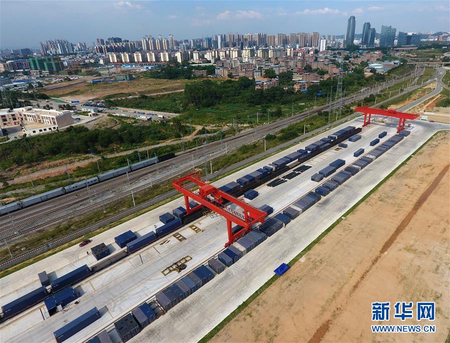 這是正在作業(yè)的南寧鐵路物流中心(5月23日無人機(jī)拍攝)。 廣西壯族自治區(qū)成立60年來,鐵路建設(shè)發(fā)生翻天覆地的變化。來自中國鐵路南寧局集團(tuán)有限公司的數(shù)據(jù)顯示,1958年廣西鐵路總里程為1346.3公里,如今廣西鐵路總里程達(dá)5191公里。廣西與周邊相鄰省份間實(shí)現(xiàn)動(dòng)車“公交化”開行。此外,北部灣港—重慶班列、東盟海產(chǎn)品冷鏈班列、“百色一號”果蔬專列等的開通和運(yùn)營,強(qiáng)化了鐵路供給的針對性和有效性。鐵路成為助推廣西經(jīng)濟(jì)社會快速發(fā)展的“大動(dòng)脈”。 新華社記者陸波岸攝